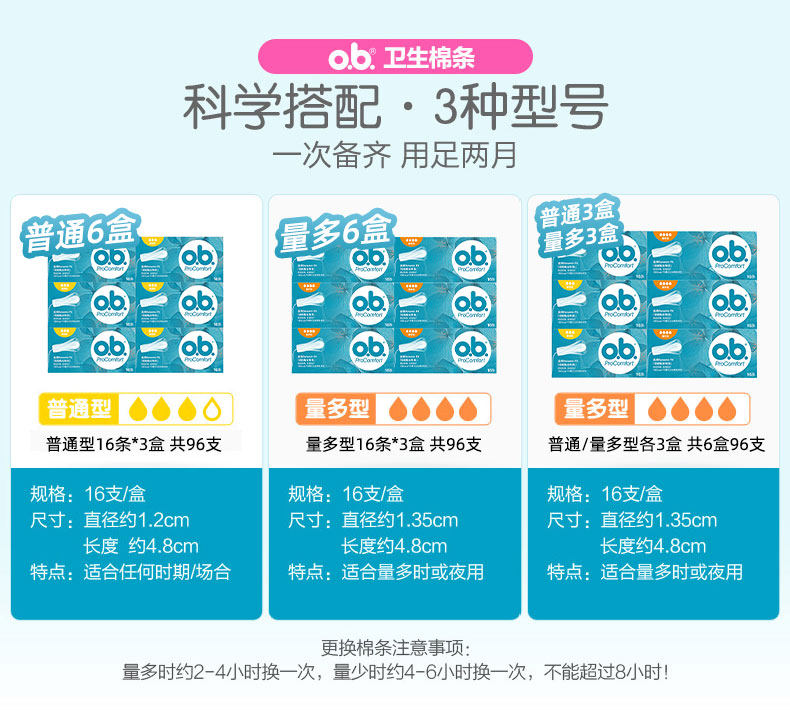 (self-employed) Johnson & Johnson ob Built in sanitary tampon 6 boxes 96 Finger Type Sanitary Napkins Sports Swimming Imports-Taobao