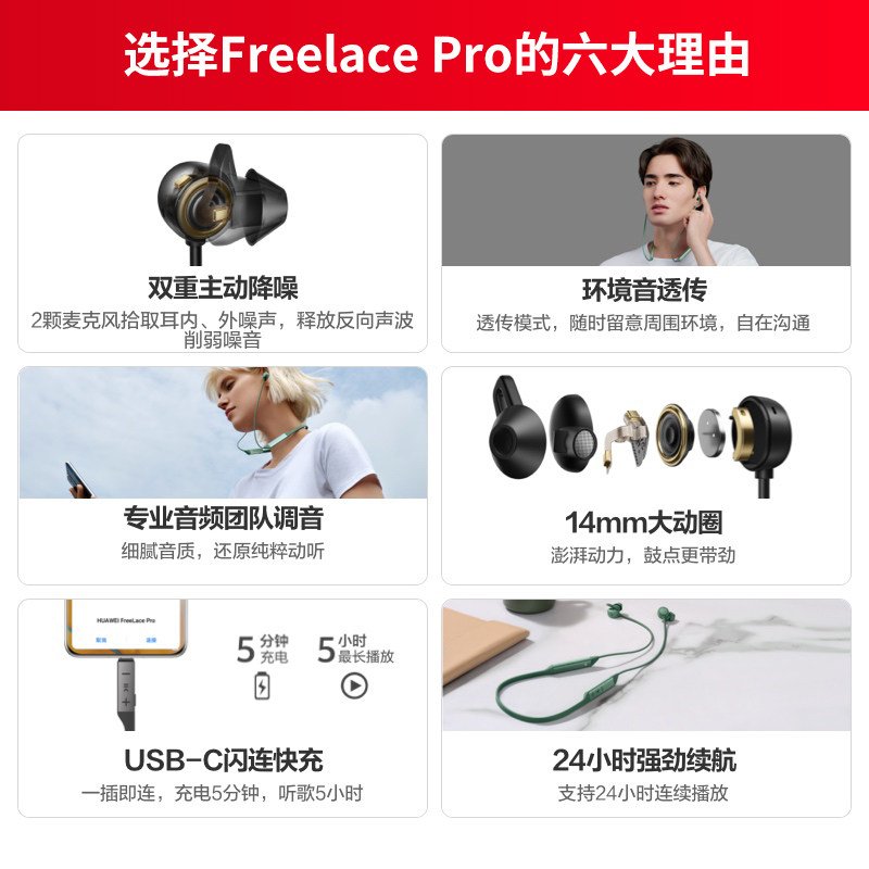 Huawei Freelace Pro wireless Bluetooth headphone sports music hanging neck-style long sequel to ear-style