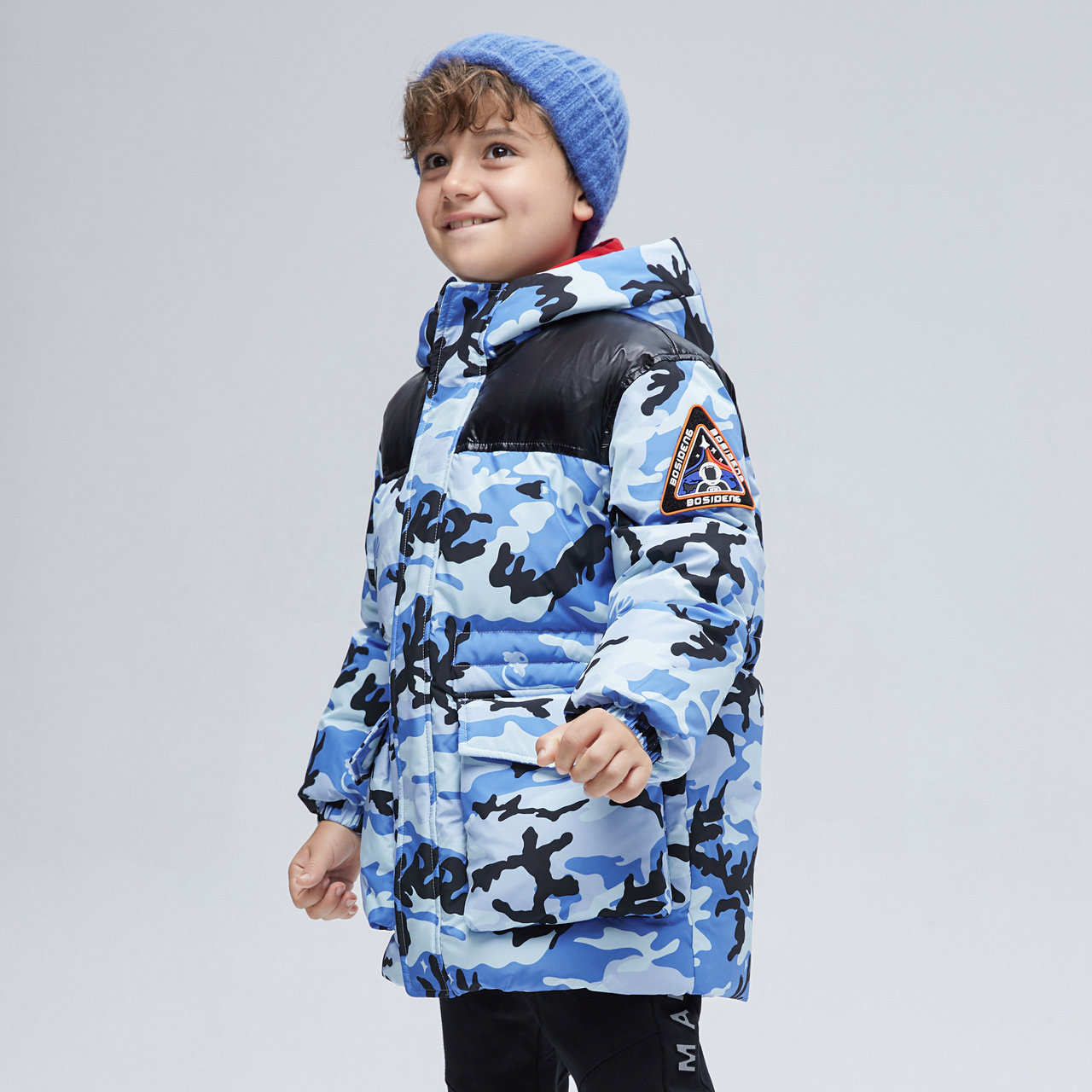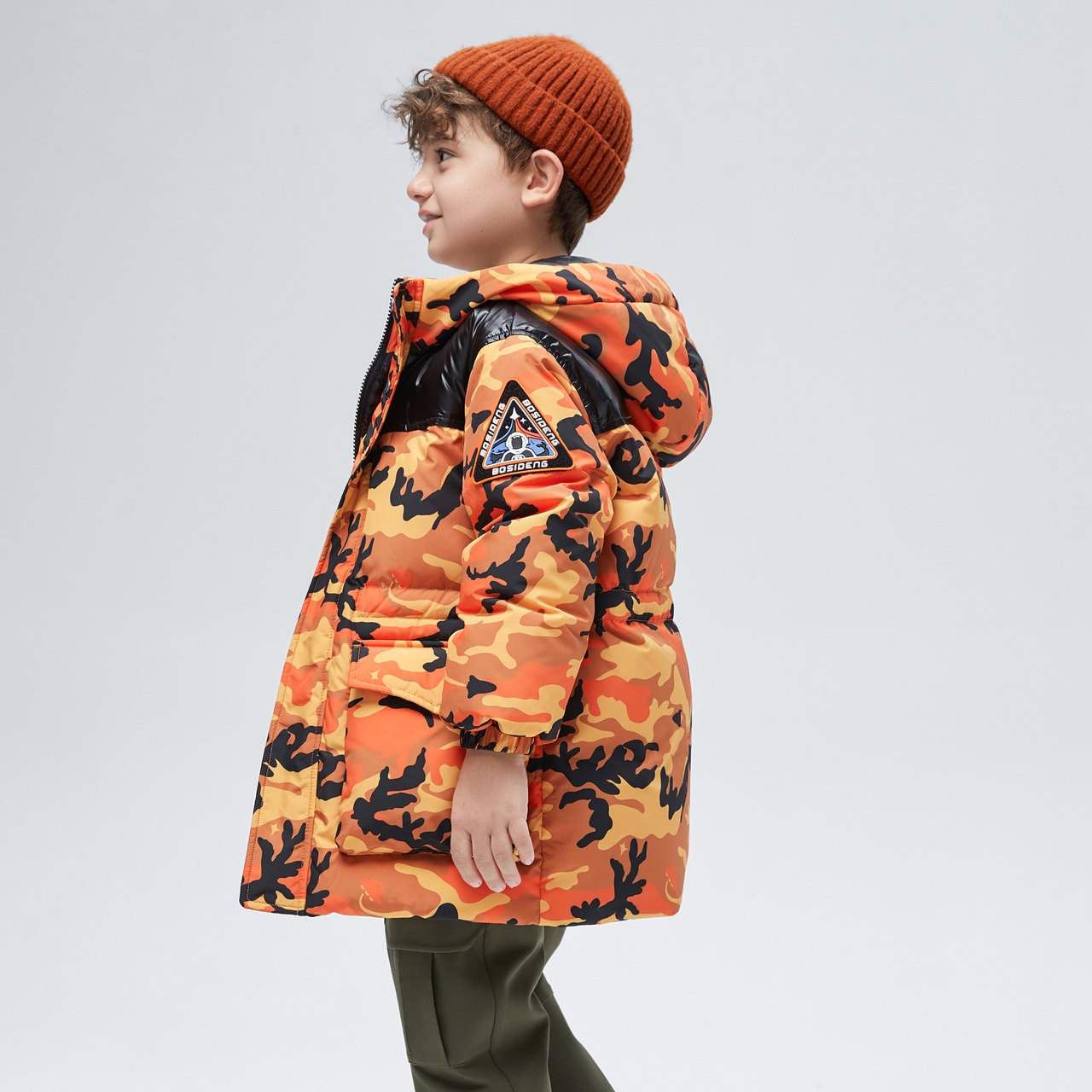 Bosideng children's clothing down jacket Boy children's camouflage fashion windproof warm antibacterial down jacket medium and long version of the waist