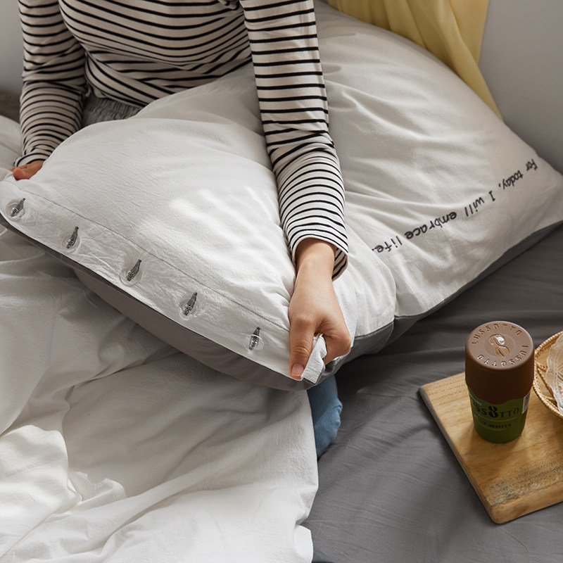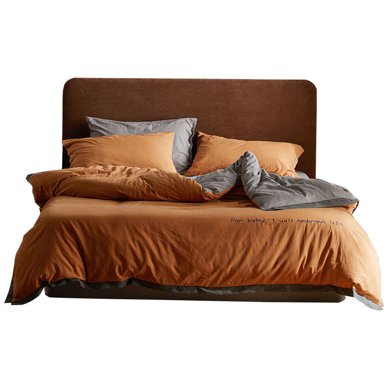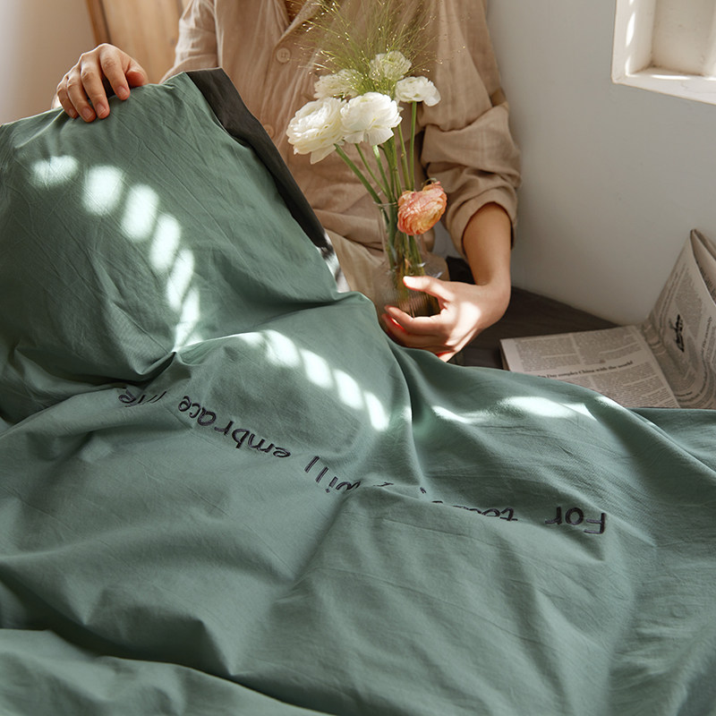 Simple cotton washed cotton four-piece set Pure cotton solid color duvet cover sheets fitted sheet three-piece set Nordic wind bedding