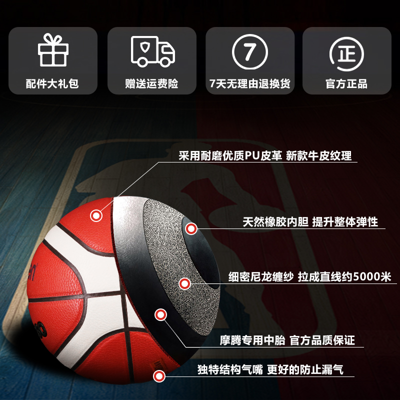 Molten Moten indoor and outdoor wear-resistant cow leather texture basketball apple peeling identification round-trip ticket