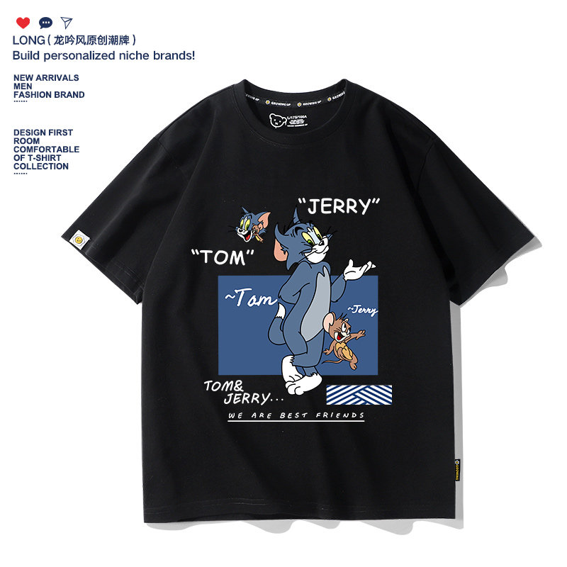 2022 new short-sleeved T-shirt men's ins trend all-match joint anime cotton loose round neck summer American half-sleeve