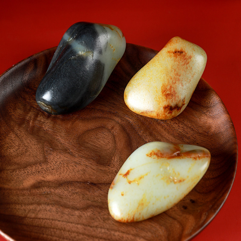 Hetian jade seed material white jade mutton fat white jade jasper bracelet ink jade green jade round bead bracelet woman