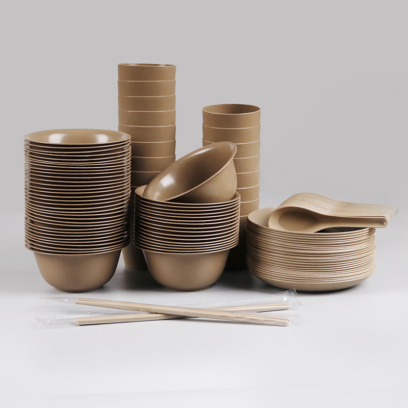 Rice husk disposable bowl chopsticks chopsticks tableware set thickened high-grade degradable four-piece set of wine banquet wedding home