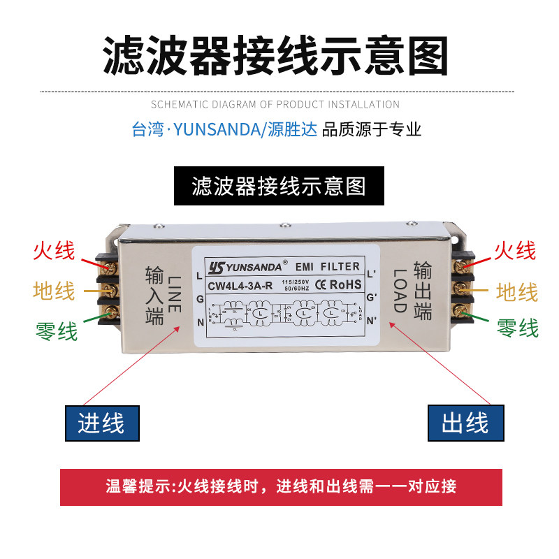 YUNSANDA filter 220V anti-interference single-phase four-stage AC power supply EMI filter CW4L4-20A-R