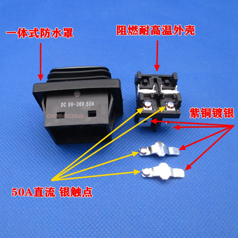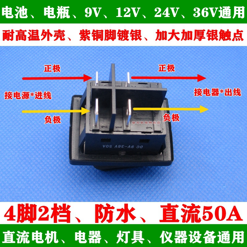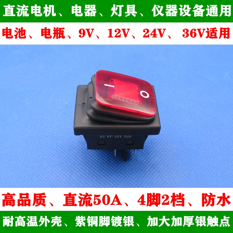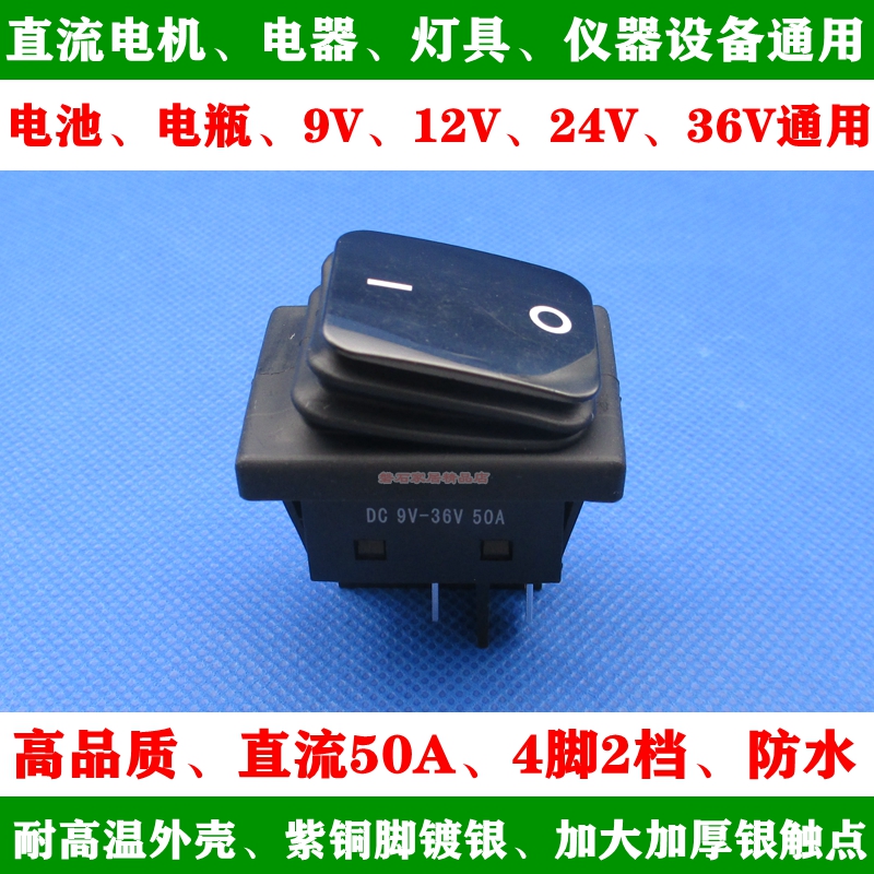 50A DC high current waterproof rocker switch 4-pin 2-speed battery battery motor 12V24V36V power switch