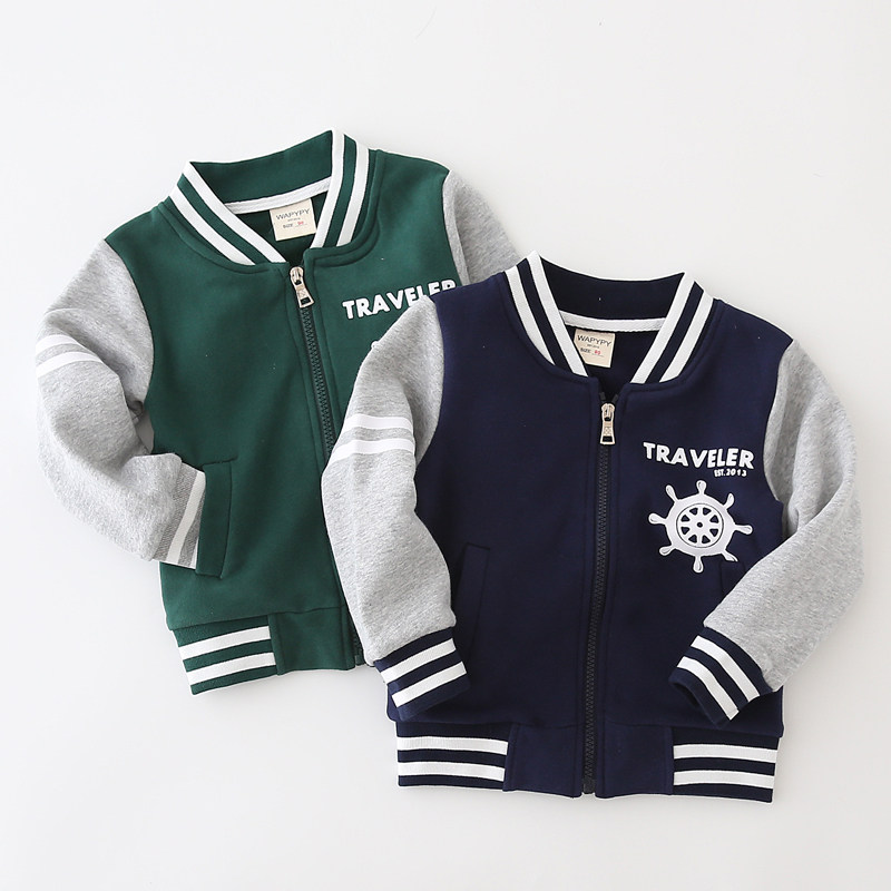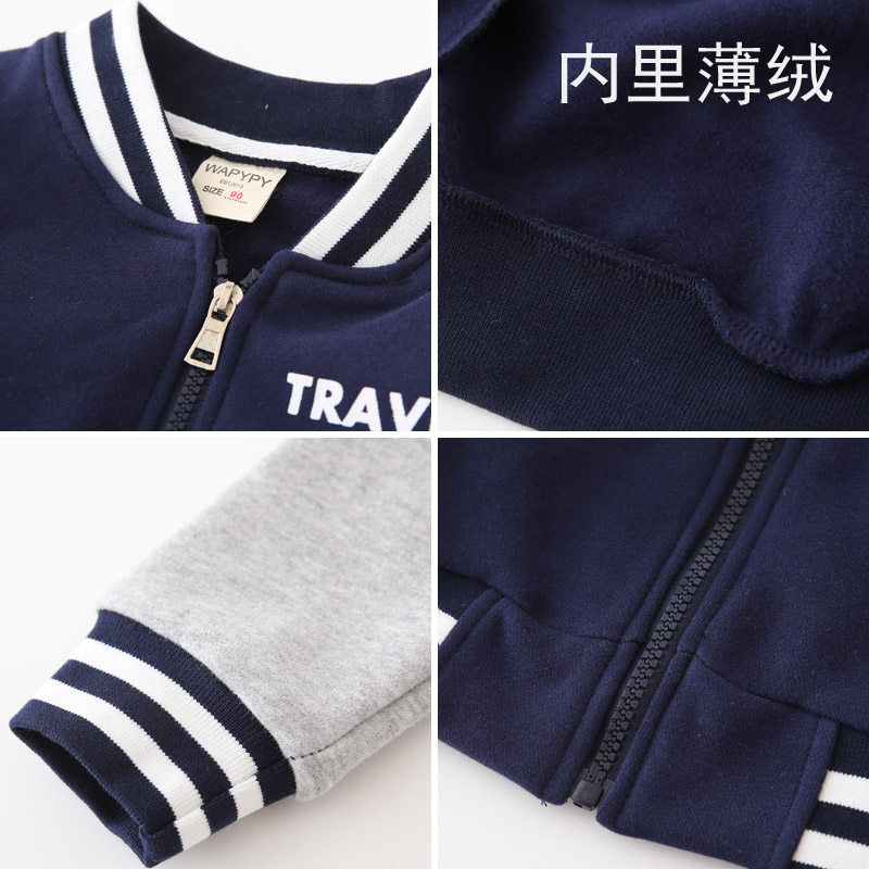 Boy jacket spring and autumn 2021 new Korean version of the foreign school children baby thin velvet thickened top children's baseball suit
