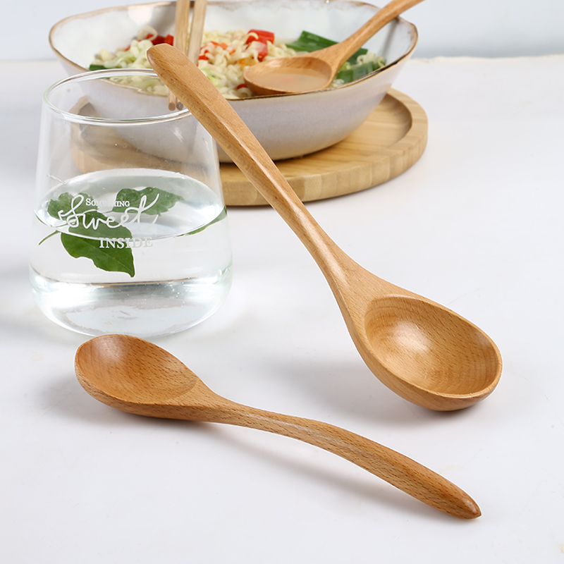 Soup spoon long handle spoon household wooden spoon wood porridge spoon porridge spoon soup spoon Japanese and Korean wooden spoon