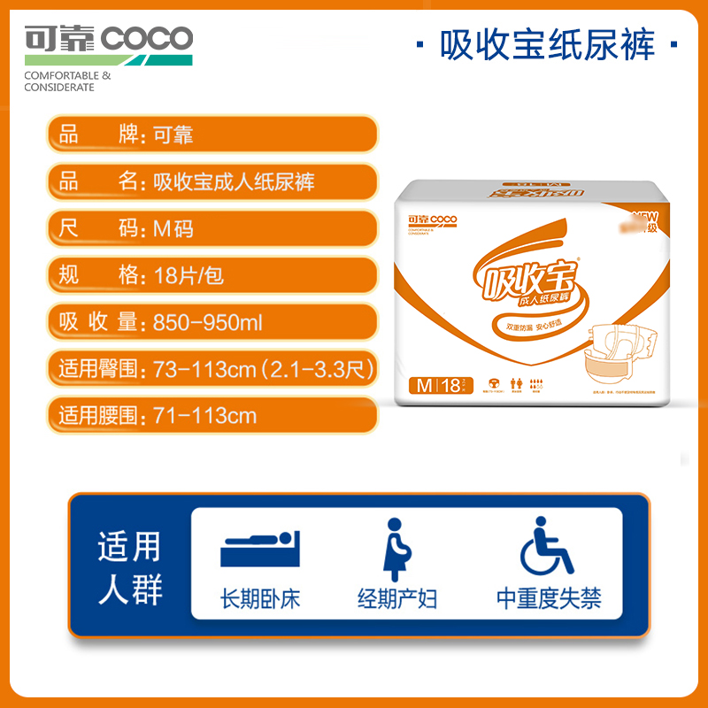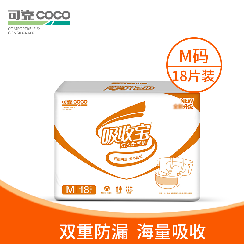 Reliable absorption treasure adult diapers M size 18 pieces single shoulder bag cotton soft close-fitting anti-side leakage moderate to severe incontinence