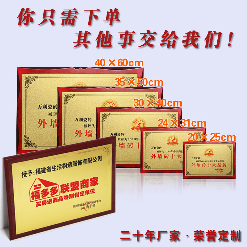 Medals customized to make gold leaf medal Wooden Care License Plate Bronze Wooden Certificate Agent Honor Card Plaque production