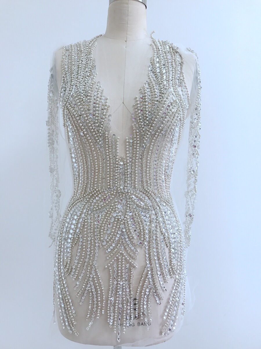 220# Zbroh Oversized Diamond Jewelry Luxury V-Neck Appliqué Hand-stitched Flower Piece Accessories Wedding Dress Decal