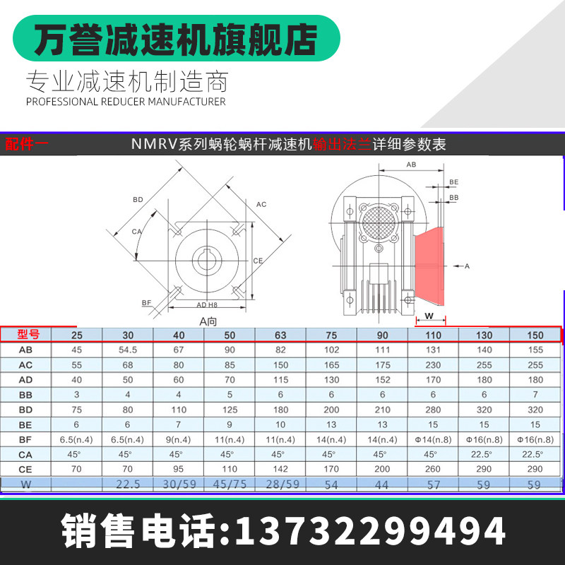 NMRV worm gear reducer output flange FA connecting seat mounting bracket aluminum flange