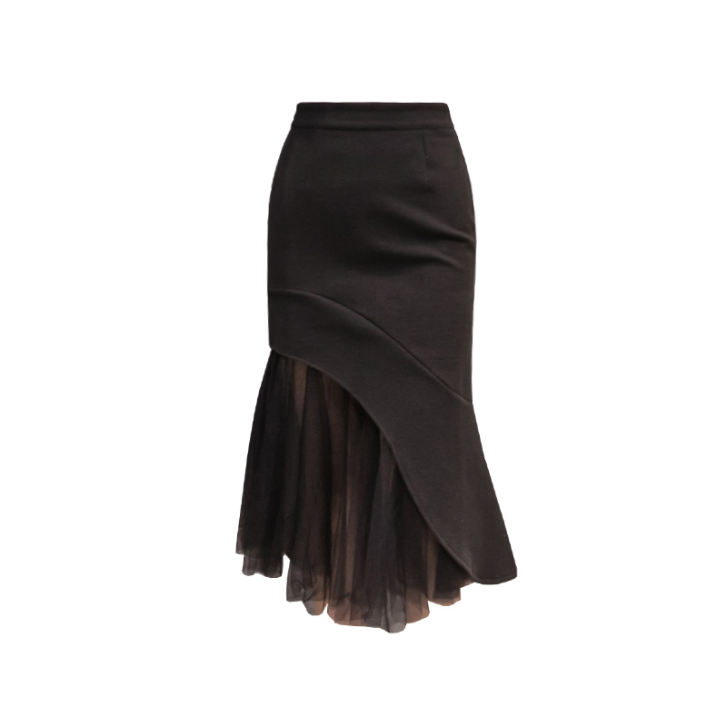 Irregular Mesh Yarn Splicing Half Body Dress Woman Mid Spring Autumn New High Waist Grinding Hair Temperament Bag Hip Skirt Fish Tail Skirt