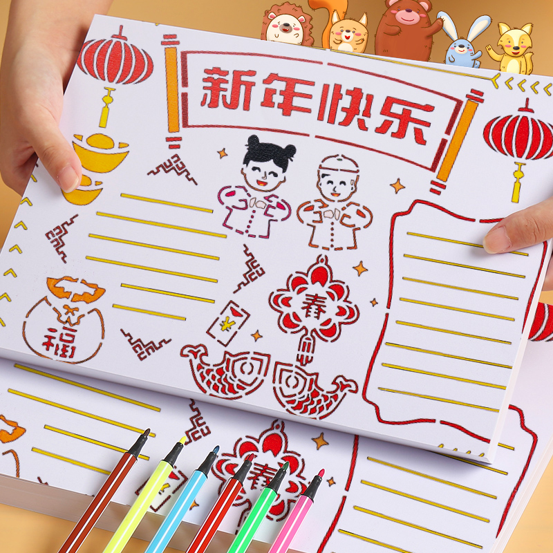 Campus Hand Transcript Private paper This blank hand copy Newspaper template 4K thickened 200G a4a3 Children's painting tools Painting material hand-painted stencil One third grade hand Transcript Job