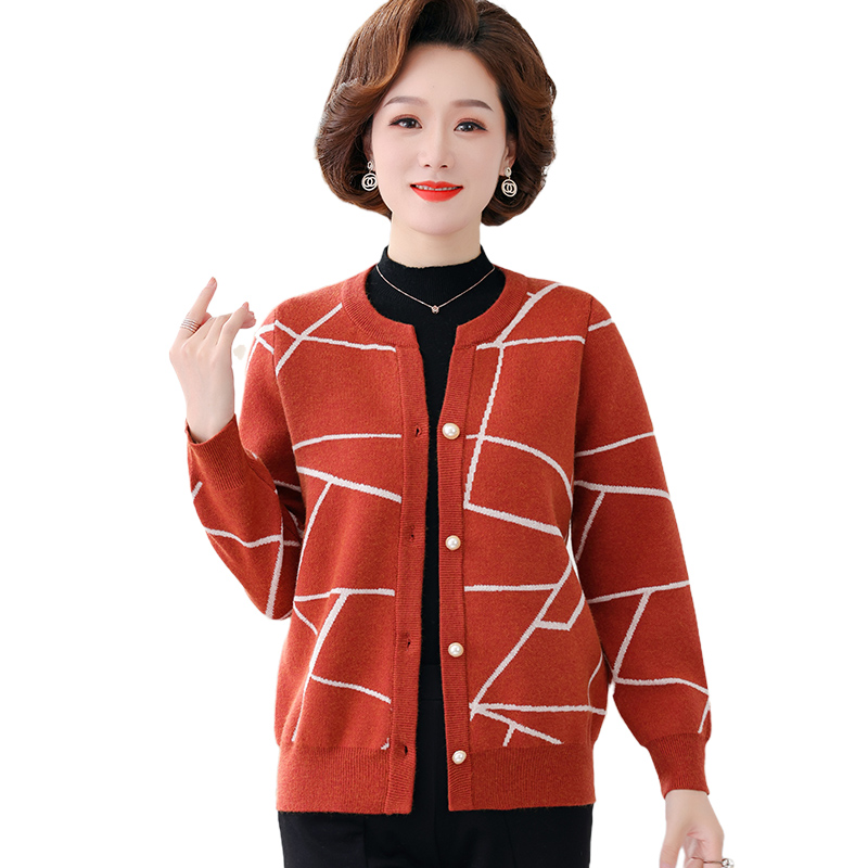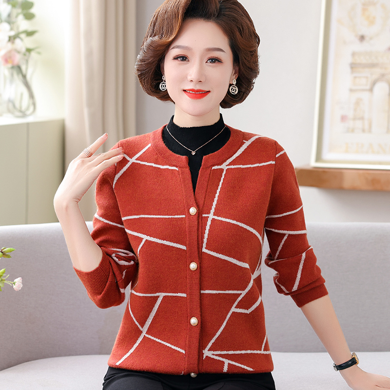 Middle-aged mother autumn coat Western style sweater suit new middle-aged and elderly women's spring and autumn cardigan short top thin