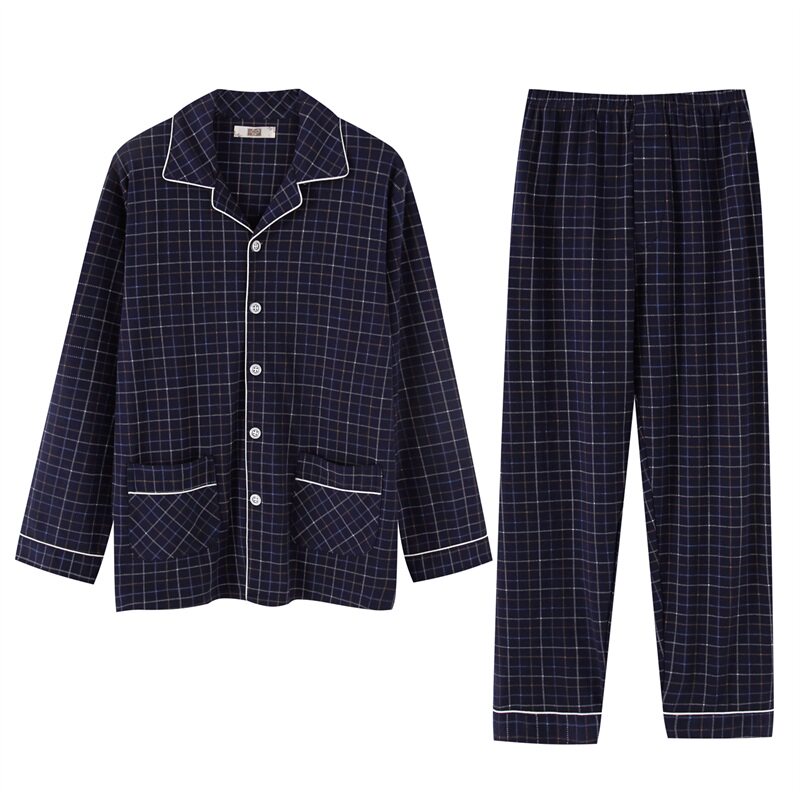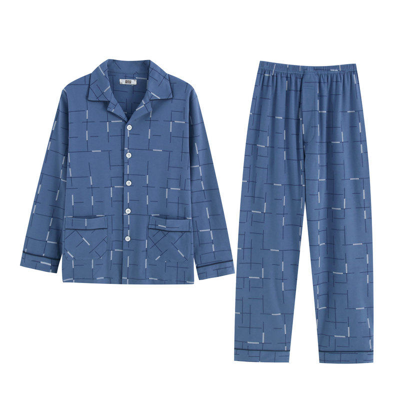 Pajamas men's autumn and winter thickened cotton long-sleeved men's pajamas pants set fat pajamas middle-aged and elderly men's pajamas cotton
