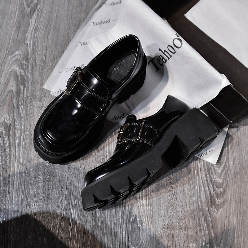 jk small leather shoes women's 2022 autumn slip-on platform shoes women's thick-soled thick-heeled round toe heightened Japanese retro single shoes
