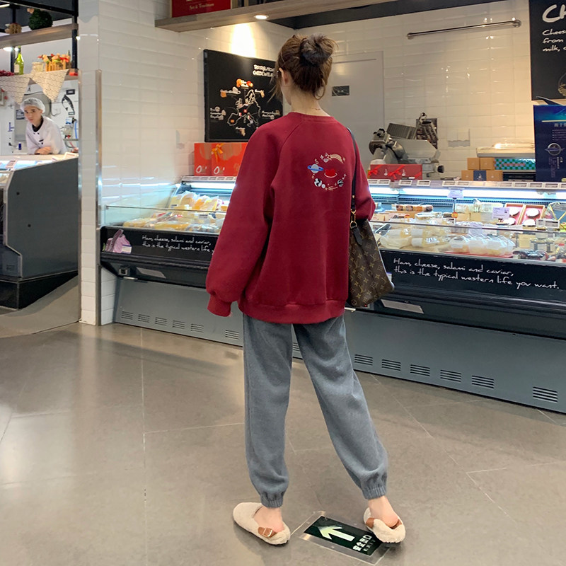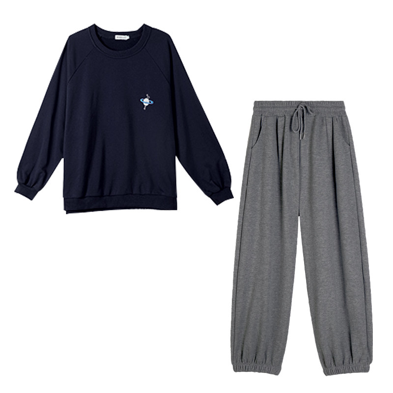 Navy blue suit (net celebrity blasting street style Hong Kong style suit female retro chic) wine red suit (two-piece suit Western style) pants single-piece navy blue sweater (top 2020