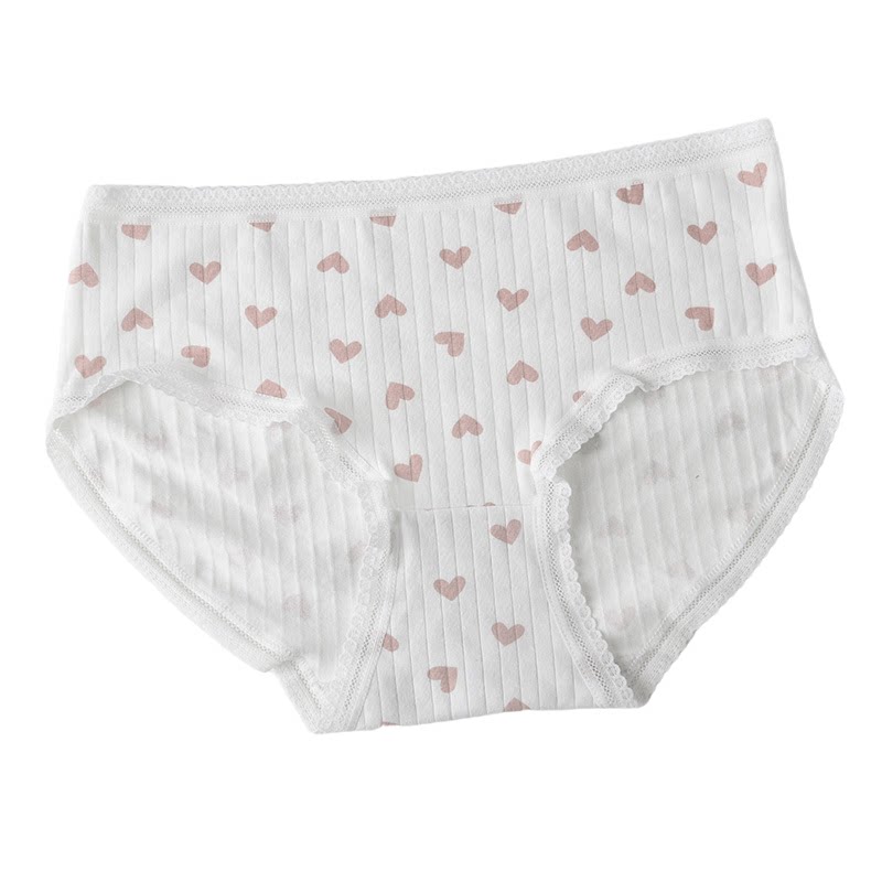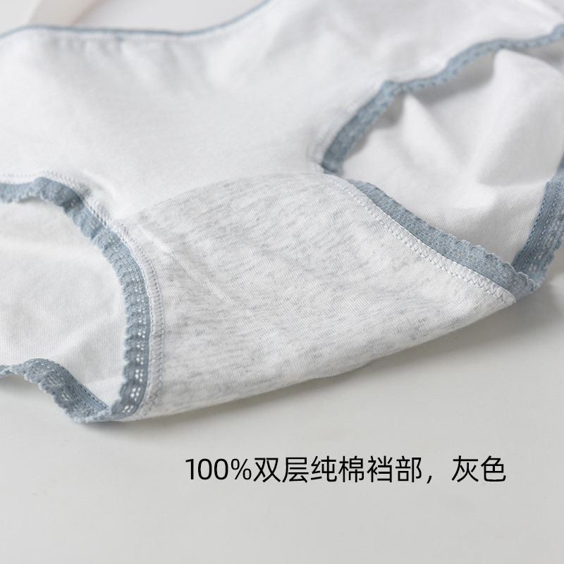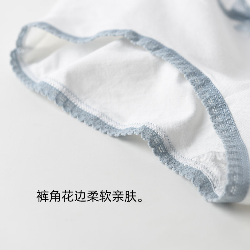 5 cotton underwear female waist size plaid love fog blue Japanese cute printing girl student breifs