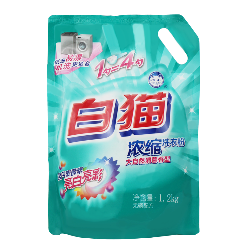 Whole box FAMILY AFFORDABLE White Cat Concentrated Washing Powder 1 2kg * 6 bags No phosphorus machine Handwashing with low bubbles and easy to drift