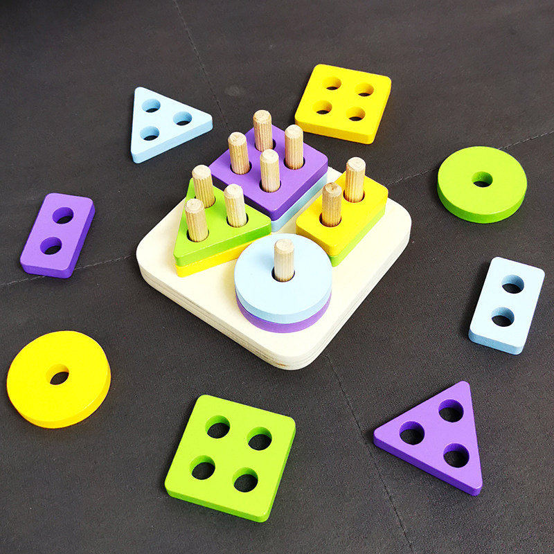 Baby Color Cognition Toy Four Sets Of Columns Block Mont Early Teach Puzzle geometric shapes pairing 1-3-year-old boy