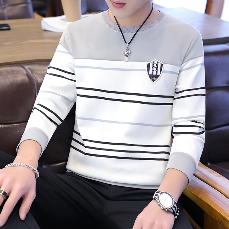 Welfare) striped long sleeve T-shirt male new Korean version round collar thick cotton T men's autumn winter trend with clothes T