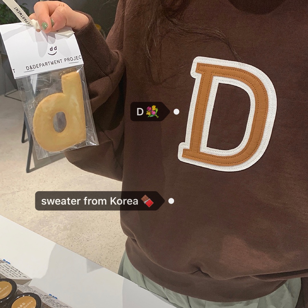 Official website maybebaby Homemade Green Self-Remain D Alphabet Cloth Sweet brown sweatshirt = IAC Han Dynasty