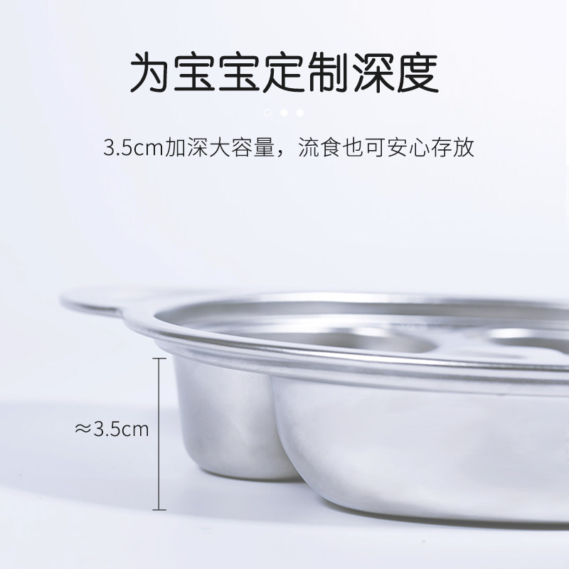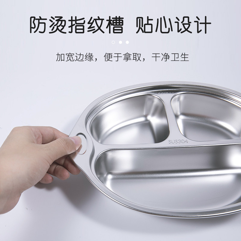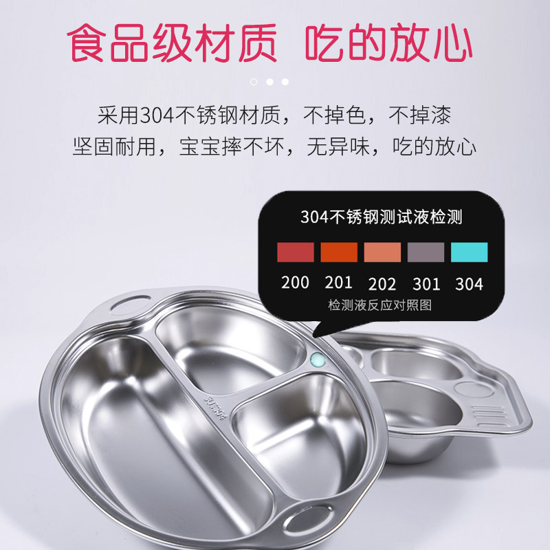 304 stainless steel children's plate Household kindergarten grid plate separated three grid children's fall-proof baby eating bowl