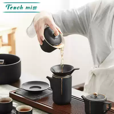 Touch Miss Japanese black pottery kung fu tea set set home gift Tea Ceremony Creative Tea Teapot Cup Bowl