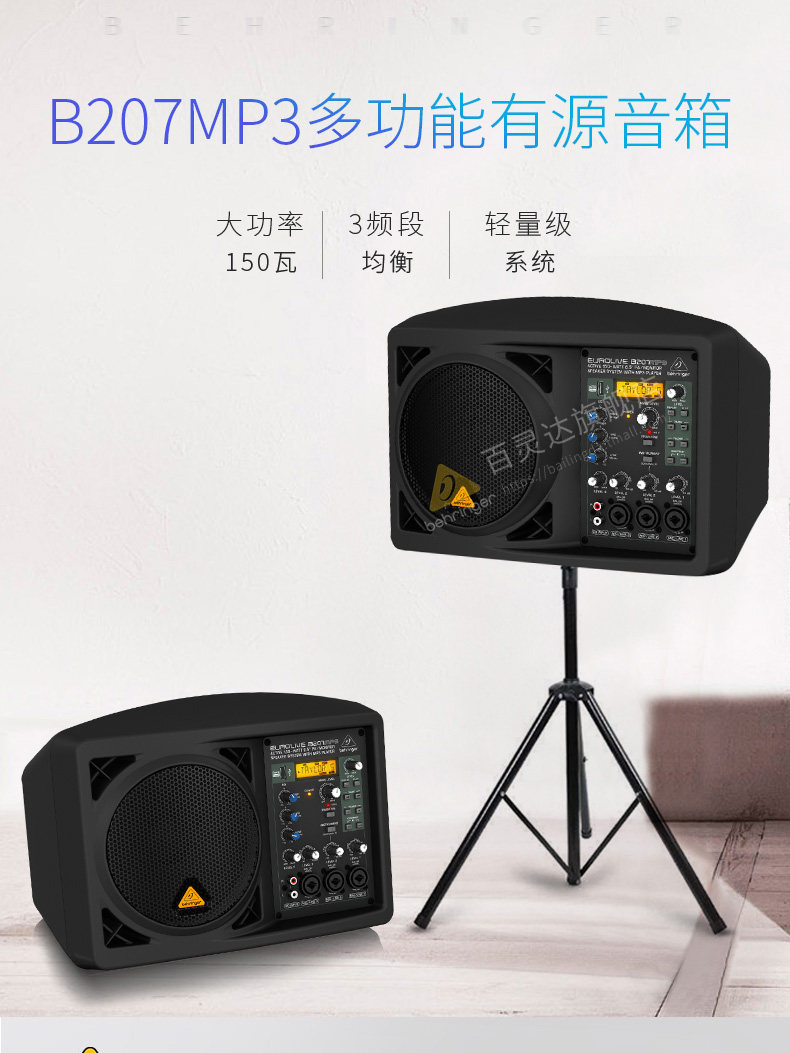 Behringer B205D B207MP3 amplifier integrated active speaker band portable audio stand SM58 microphone