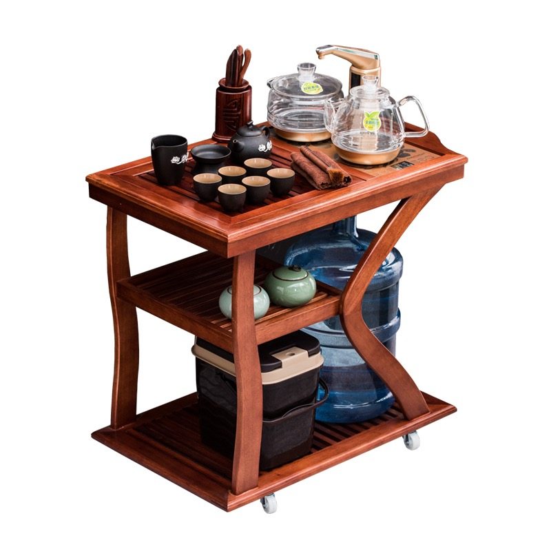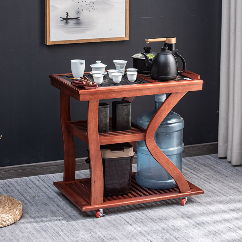 Huali mobile tea cart, solid wood tea stand, kung fu tea set, black gold stone tea tray, household integrated set, small tea cabinet table