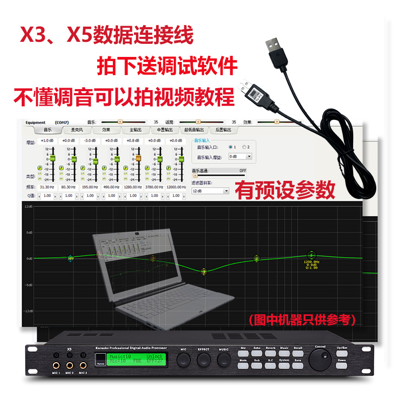 Yunle X3X5 pre-effector universal computer data cable USB debugging cable KTV tuning video tutorial parameters