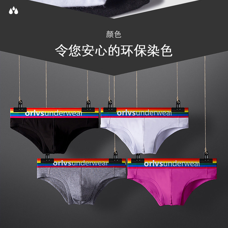 Men's low-waist sexy pure color men's briefs cotton gay men's attack gay creative rainbow shock underwear