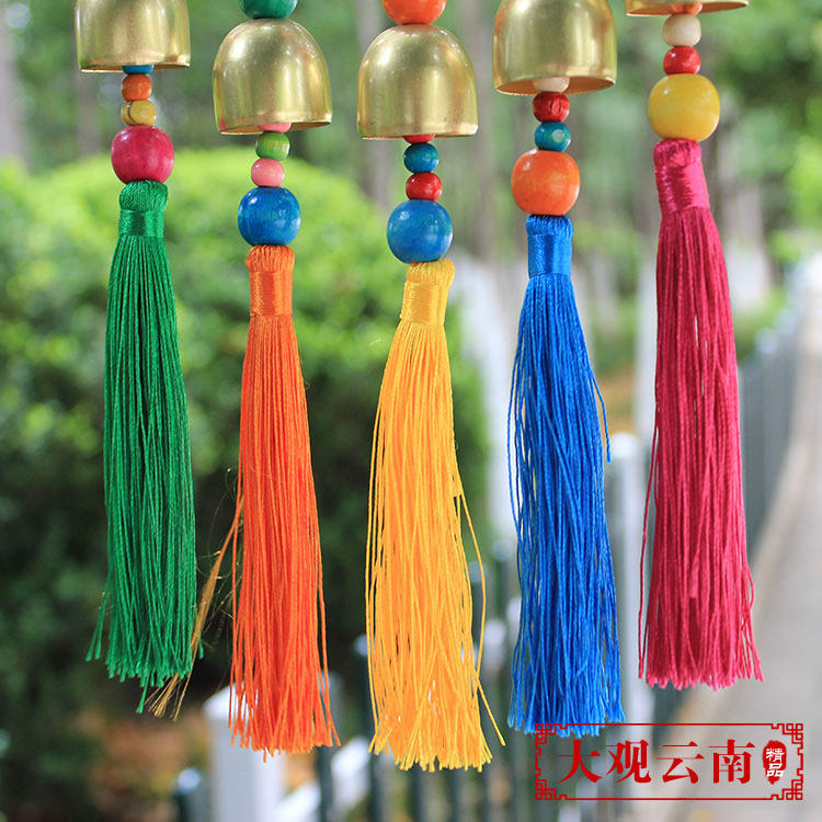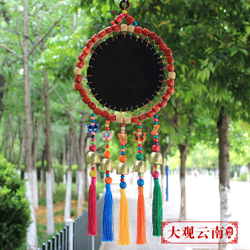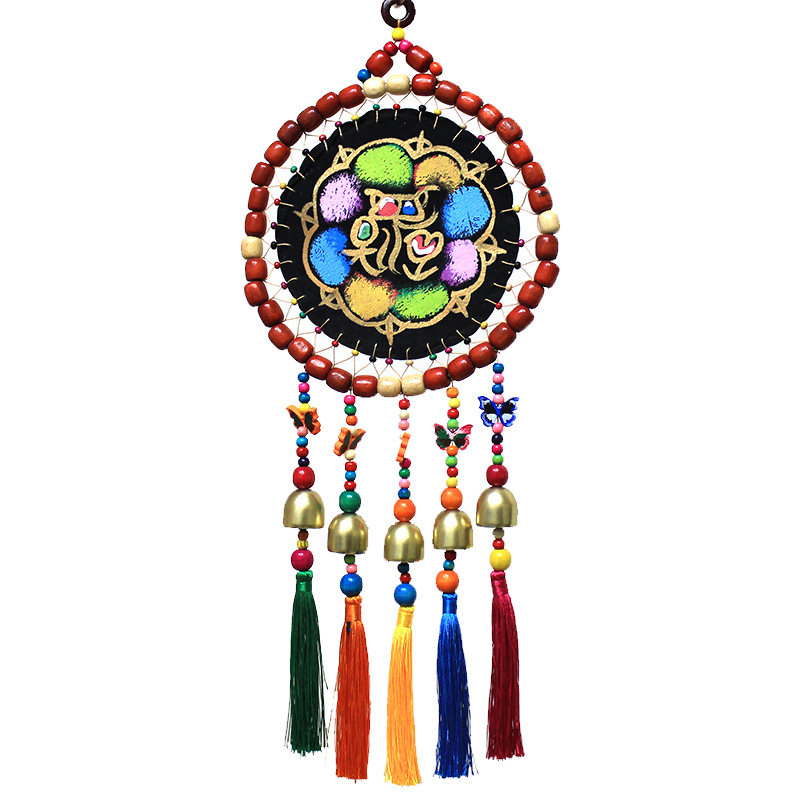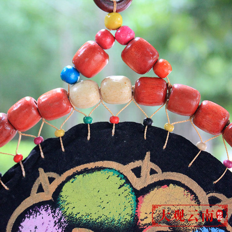 Hand-made features hanging Lijiang Dongbawen wall hanging ethnic style wall decoration Dining room bar decoration Wood beads color leather door decoration
