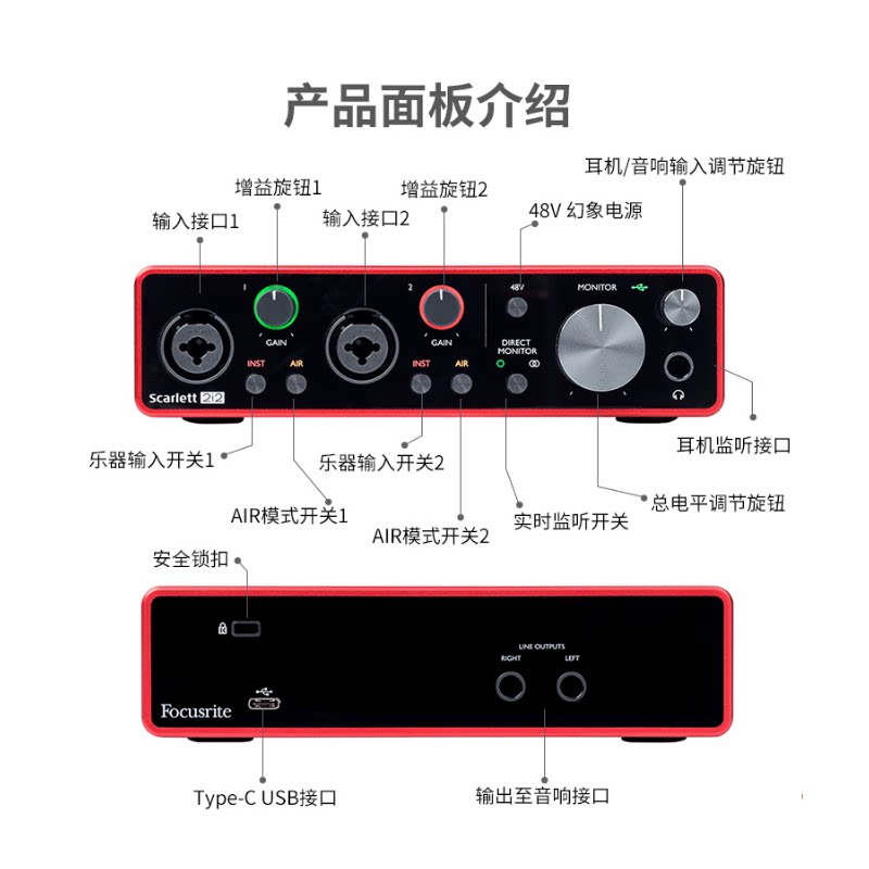 Fox's Focusrite Scarlett 2i2 three-generation choreographic recording sound card USB audio interface