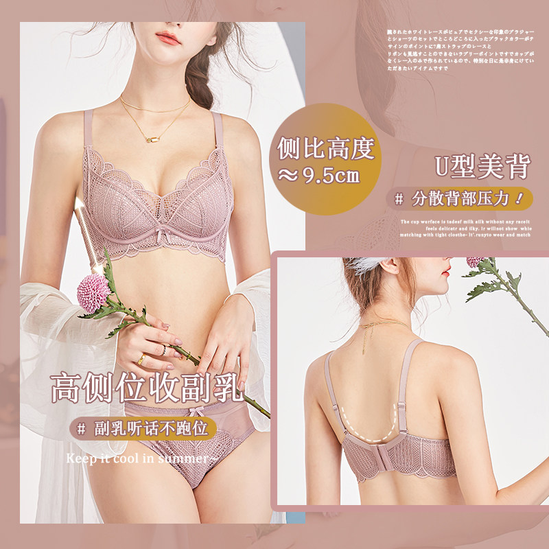 Lace Girl Underwear small breasts to gather without steel ring thin section adjustment type collection of auxiliary milk anti-sagging upper nursing underwear suit