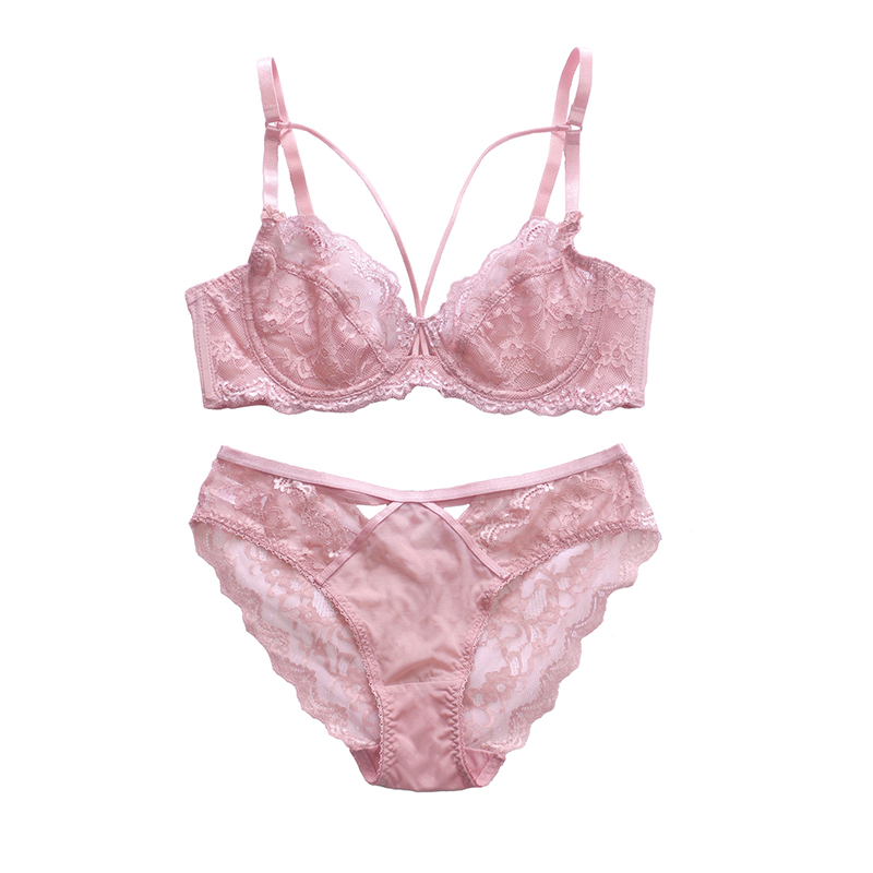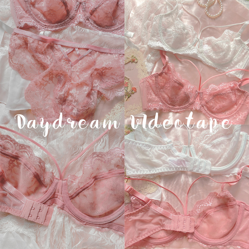 Libi Dream ~ French Vintage Thin Lingerie Set Lace Light Sexy Girl Big Chest Show Small Bra Cross