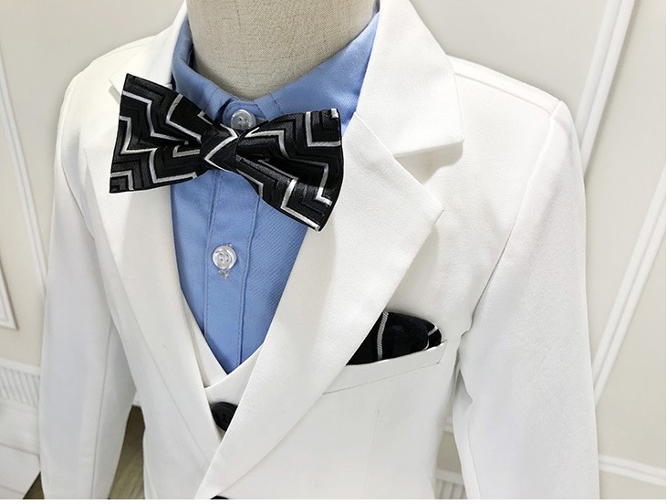 White (coat + pants + vest + shirt) Bow tie + tie