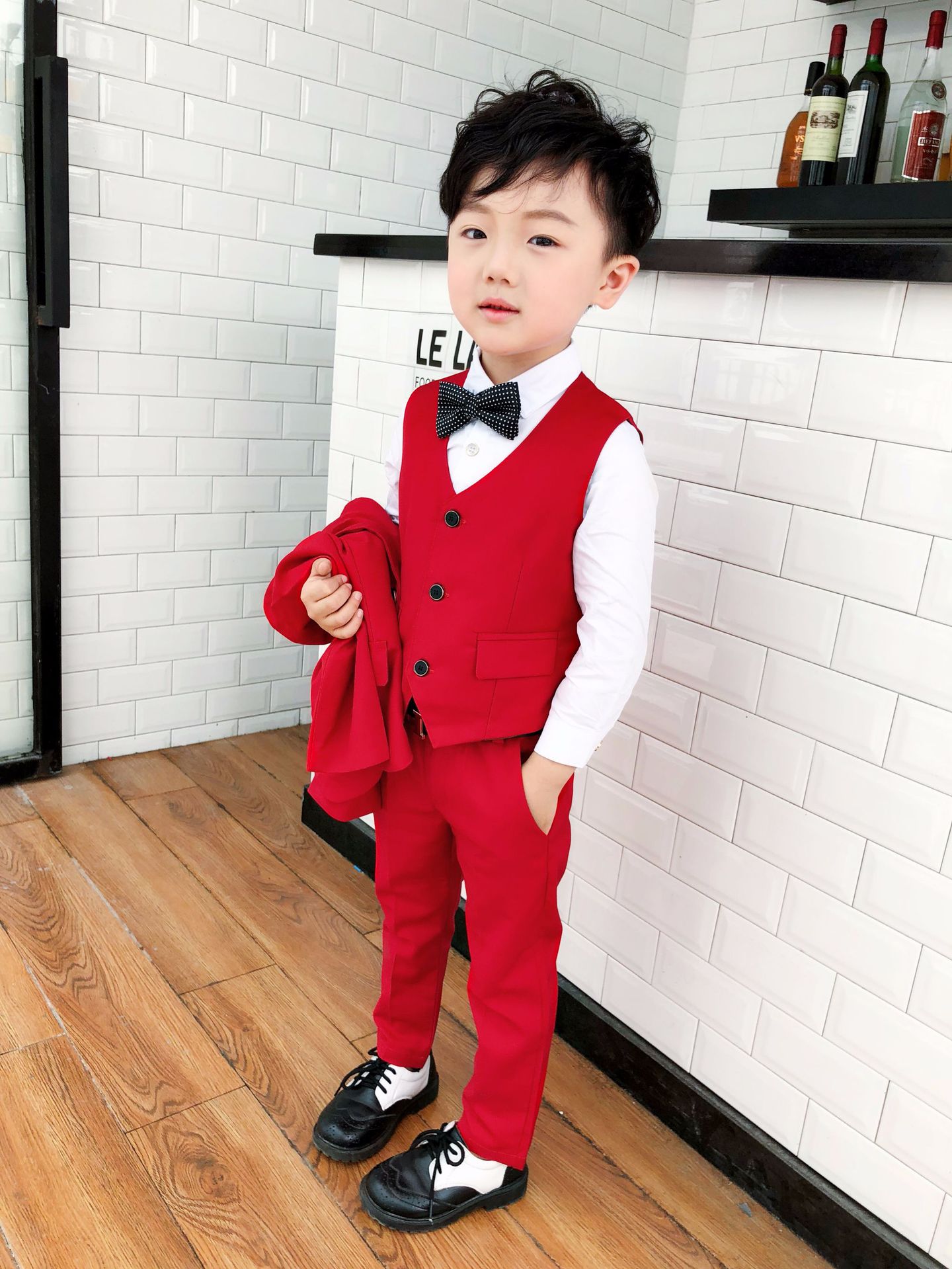 Red (coat + pants + vest + shirt) Bow tie + tie