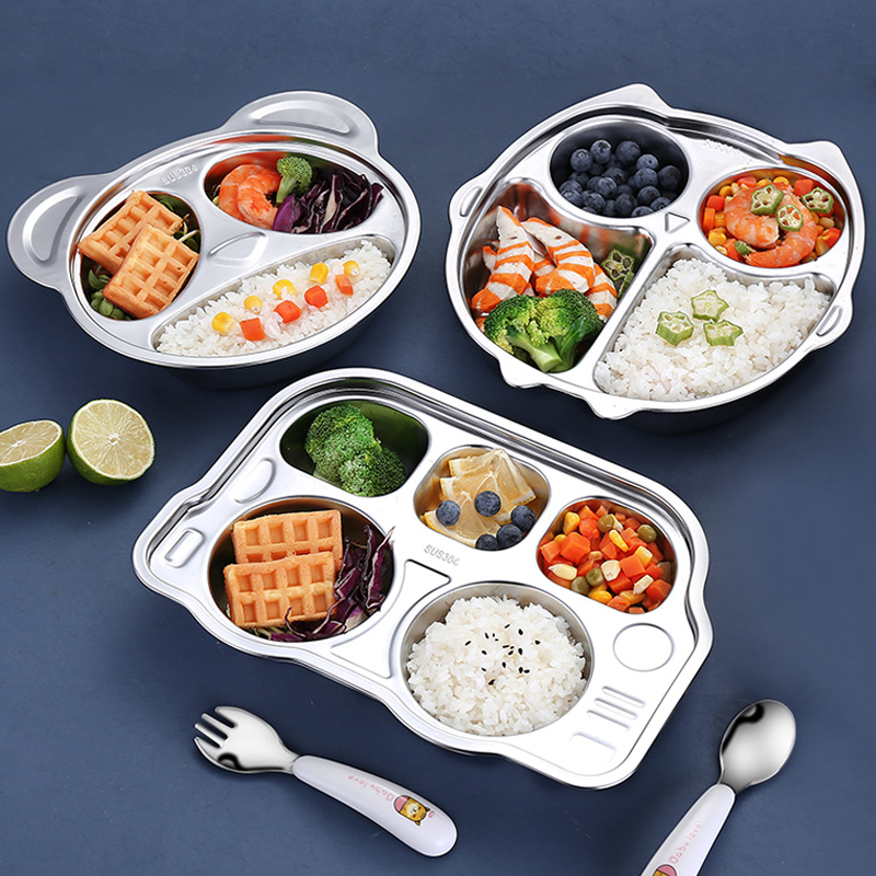 Kindergarten Children Dinner Plate Home Cute Cartoon Anti-Fall 304 Stainless Steel Baby Cutlery to eat Sub-plate
