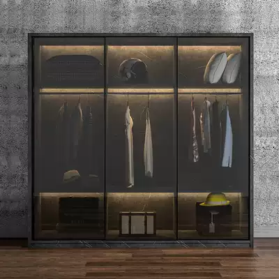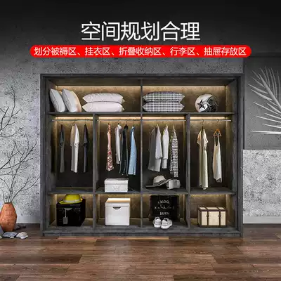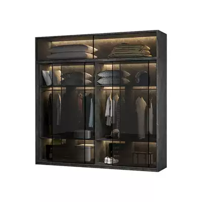 Modern sliding door custom sliding large wardrobe Simple glass solid wood small apartment bedroom Nordic style wardrobe