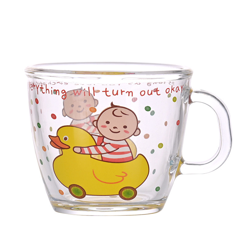 Anti-Fall Children Glass Water Cup Baby Milk Cup Breakfast Cup Water Cup Cartoon Cup Cute Mug Trumpet Home