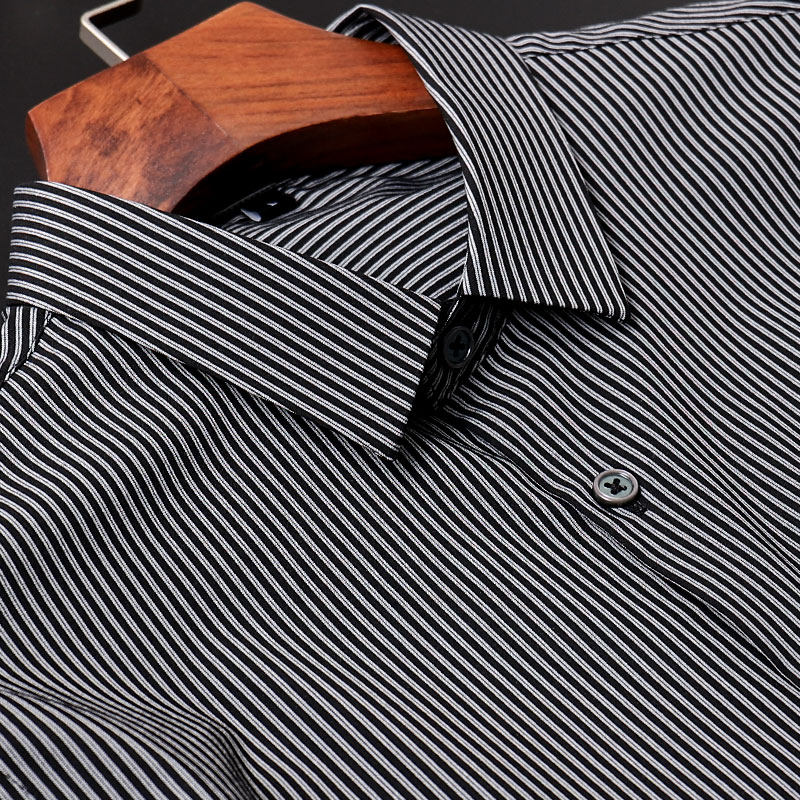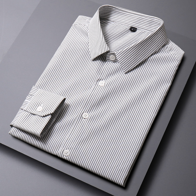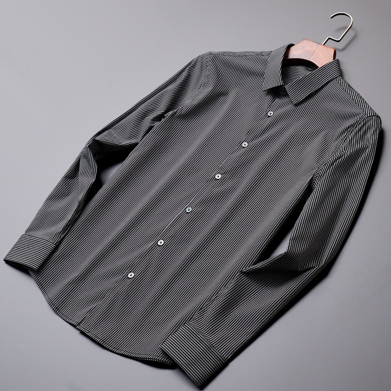 Light Extravagant Personality Fall Sashimi Shirt Male long sleeve trendy rufflet-handsome Qi Striped Shirt Han Edition Business Casual Inch