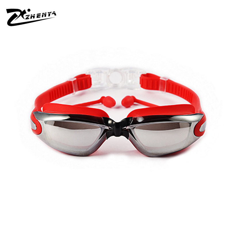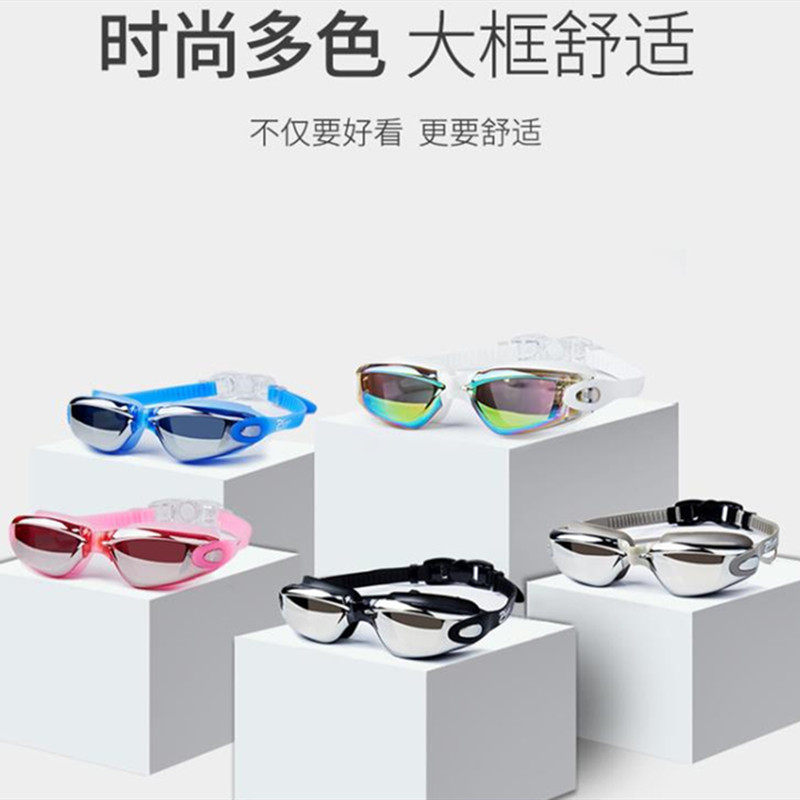New HD swimming glasses with earplugs electroplated lenses waterproof and anti-fog transparent flat light men's and women's myopia goggles