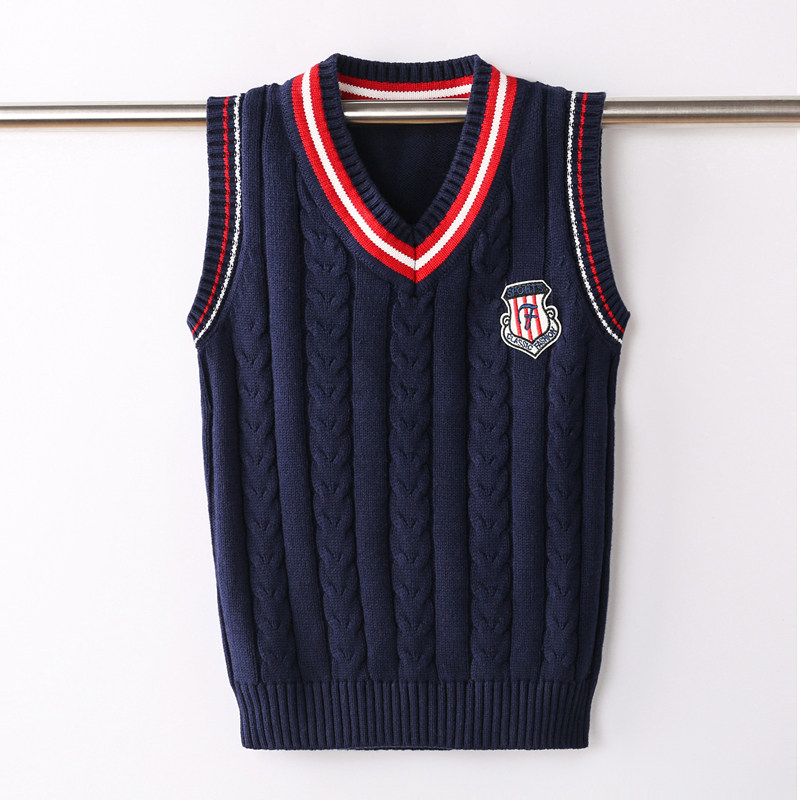 Boys' knitted vests wear tide-style children's vests, sweaters, vests, middle-aged boys, spring and autumn vests, pure cotton