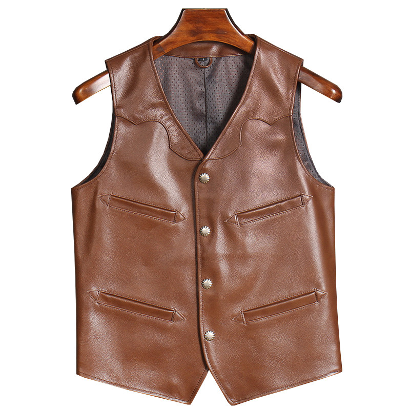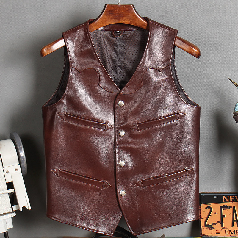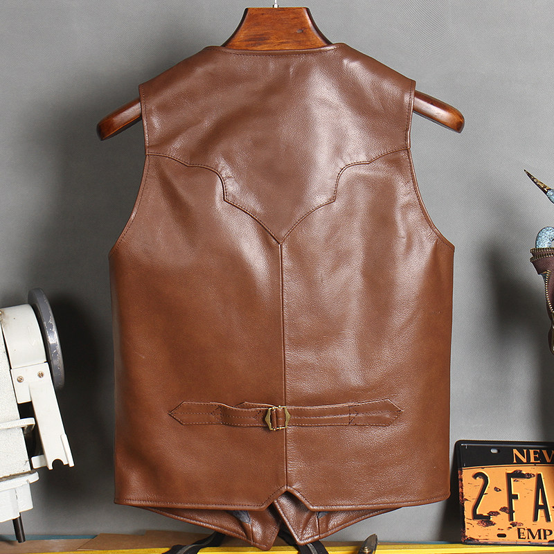 Special import batik head layer calfskin Japanese Aramis khaki retro tooling vest men's leather leather