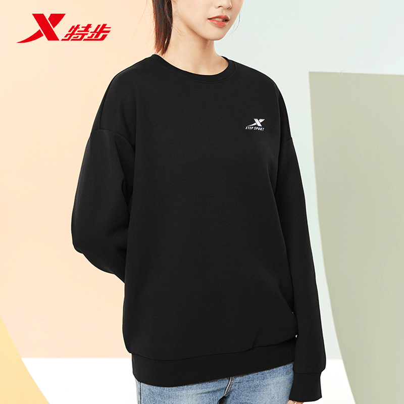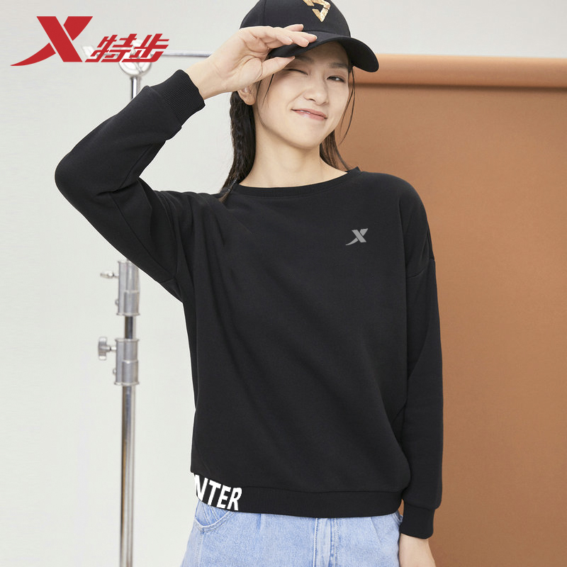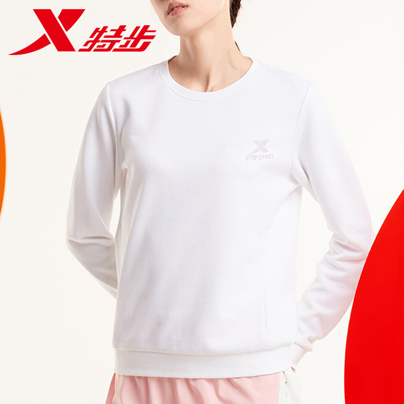 Xtep Sweater Women's Spring 2022 New Loose Round Neck Women's Tops Sports Pullovers White Casual Long Sleeves