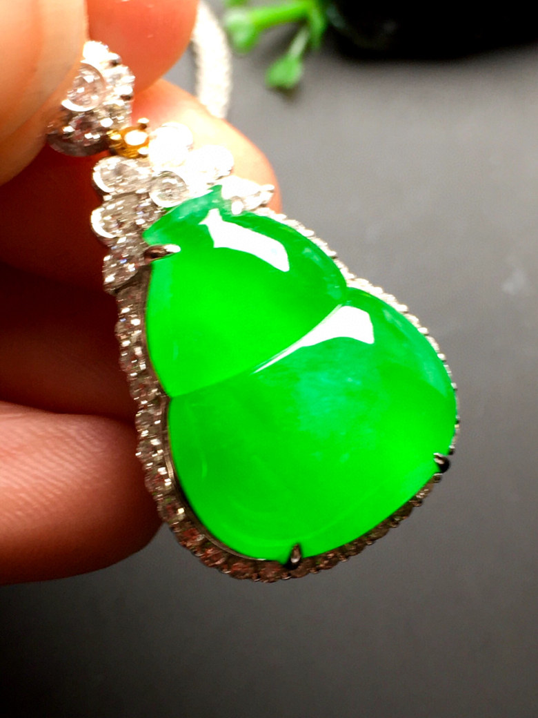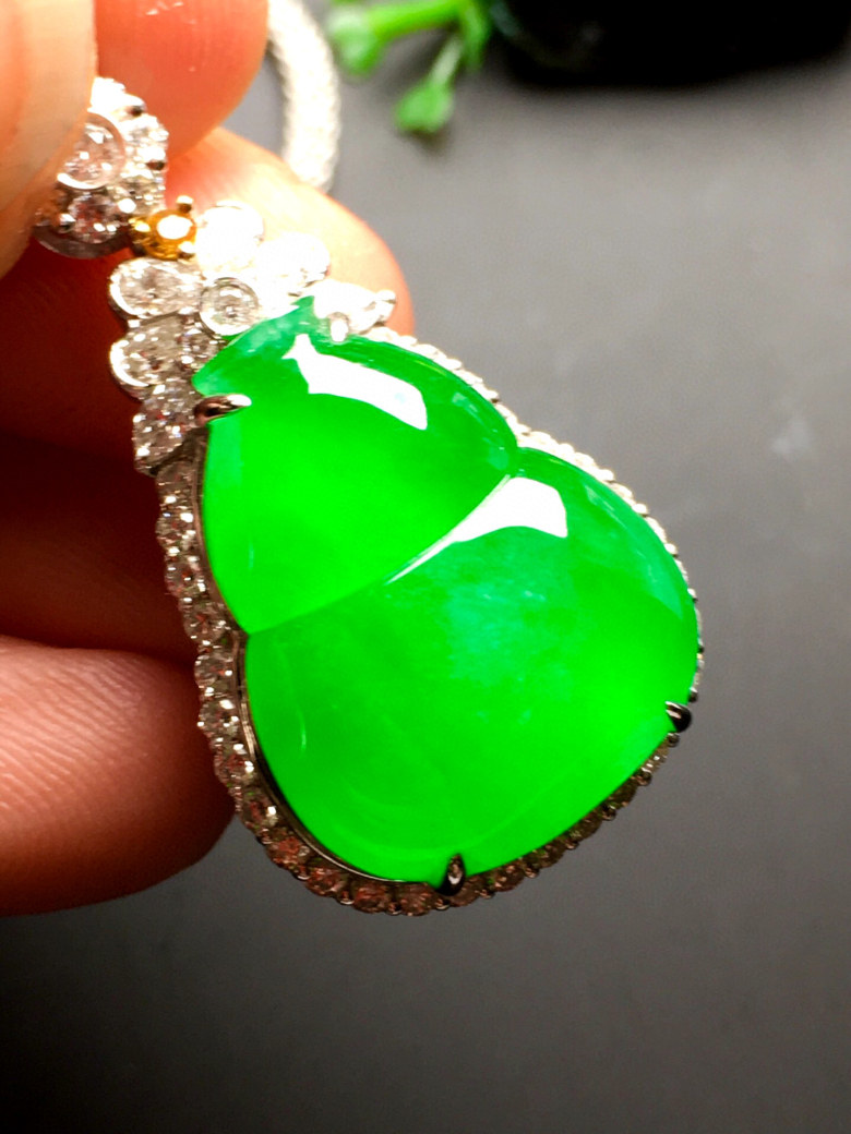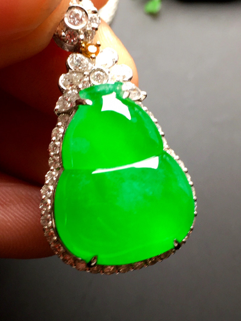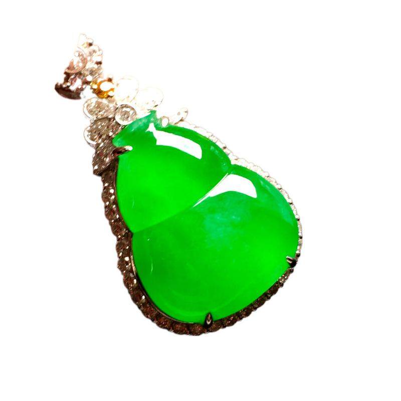Burmese jadeite full sun green gourd pendant high-end ice species A goods neck ornament earrings jade pendant women's 18k gold inlay