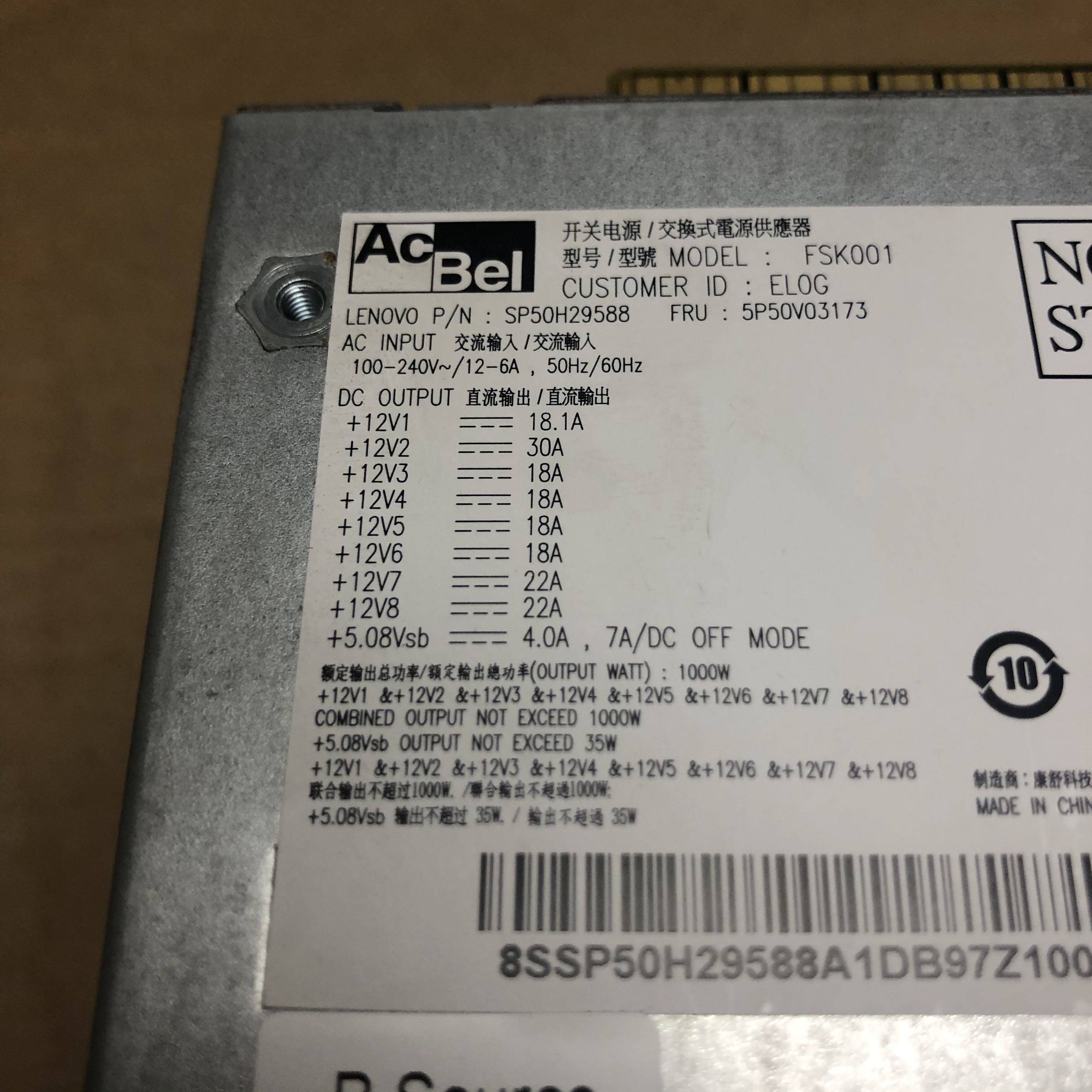 Original Lenovo P520 P720 workstation 1000W server power SP50H29588 5P50V03173