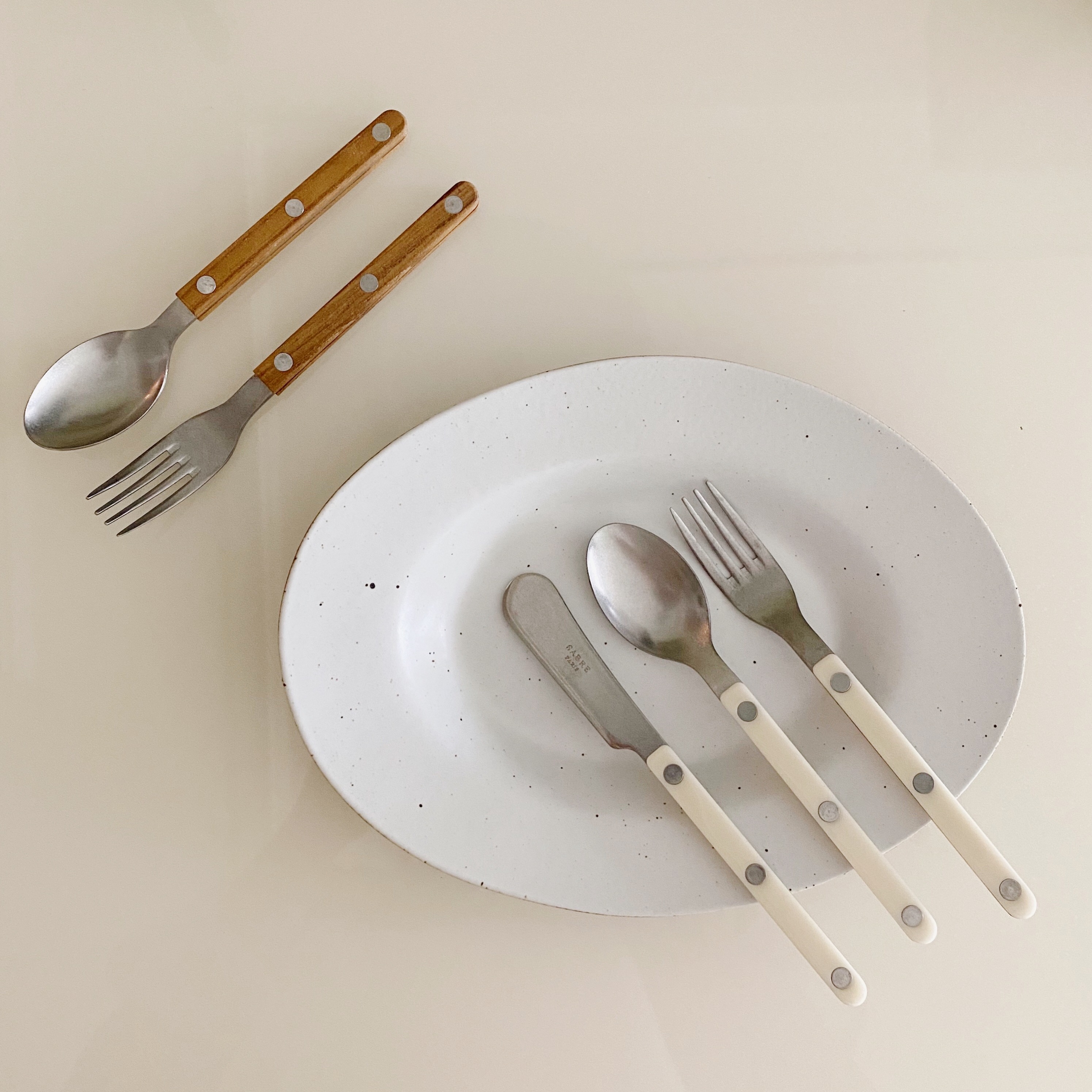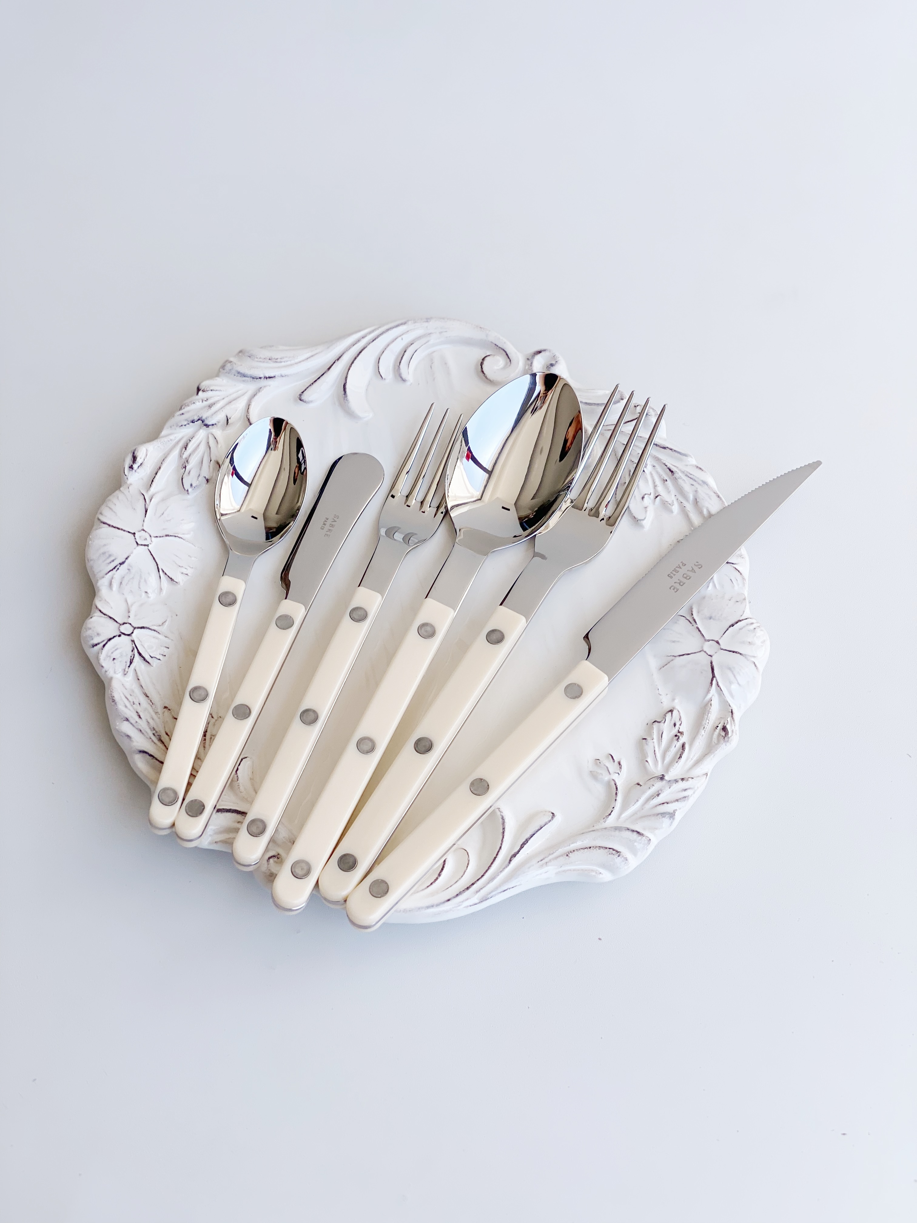 YURUUI designer] spot French Sabre Paris milky white knife fork spoon stainless steel western tableware